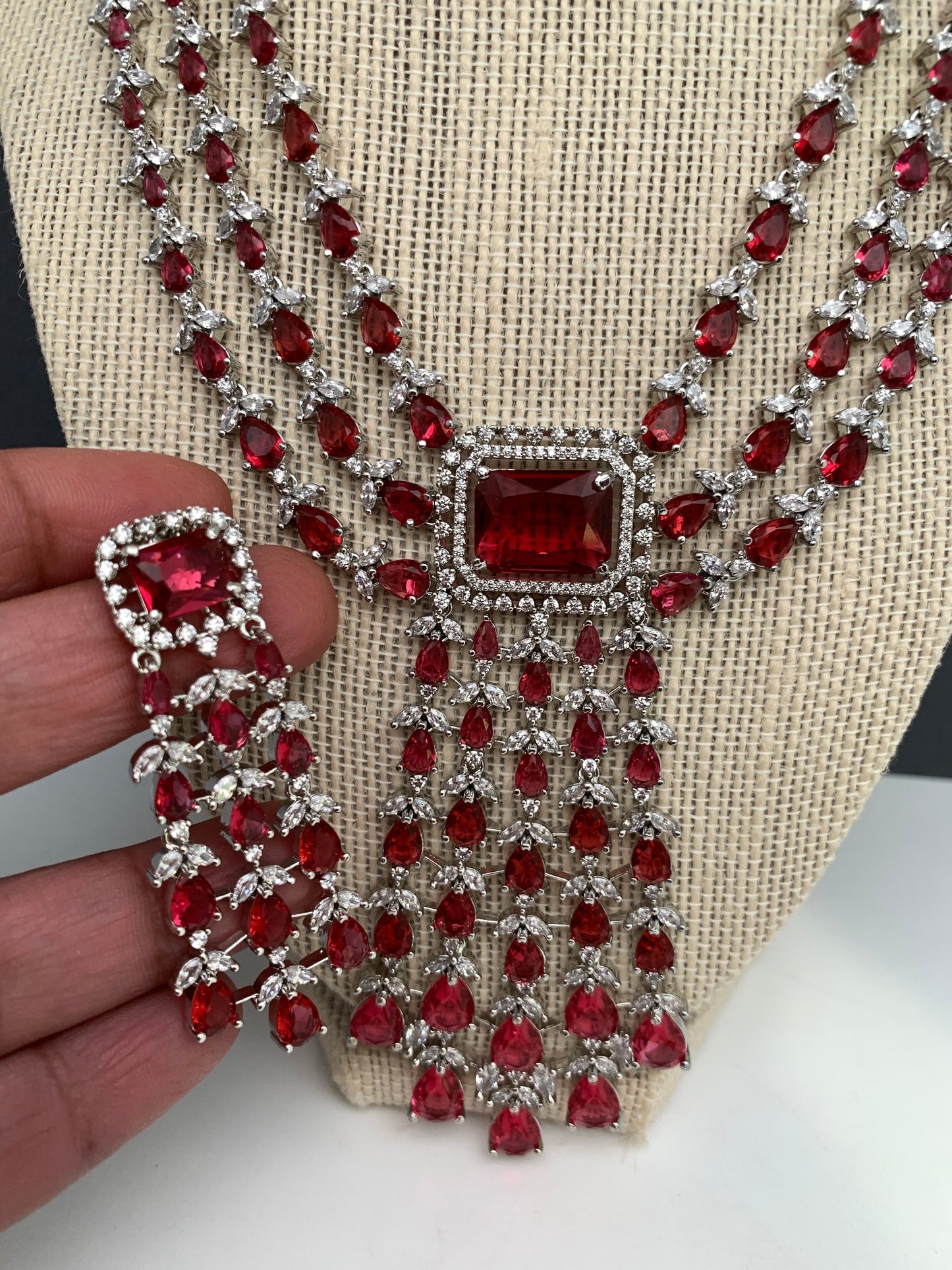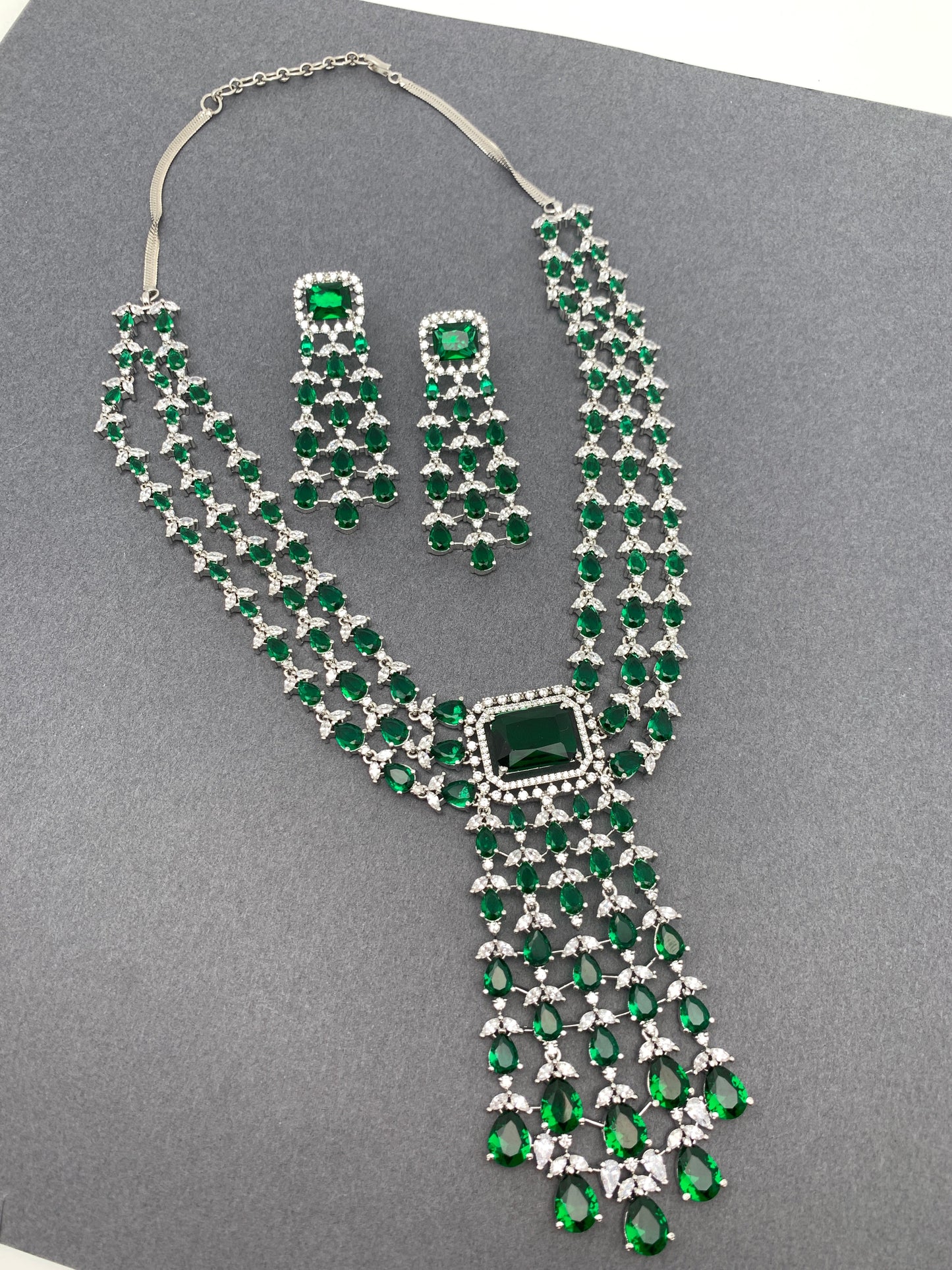 Doublet Stone Silver Finish Short Necklace with matching earringsColor : Silver ADSize : Necklace Length : 18 Inches; Earrings Length : 2.5 Inches;Stones : AD Blue Doublet Stone