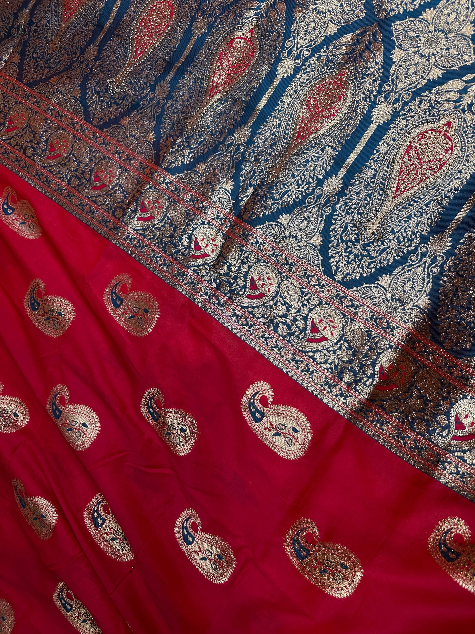 Blouse Details : Blue Blouse Size 38 and has margin to go up to Size 46; Sleeves Length : 9 Inches: Blouse Length : 15 Inches; Front Neck : 7 Inches; Back Neck : 10 Inches Inches
