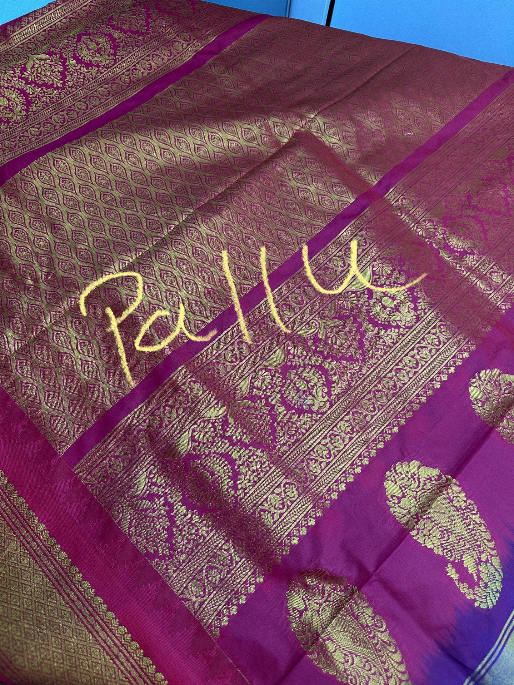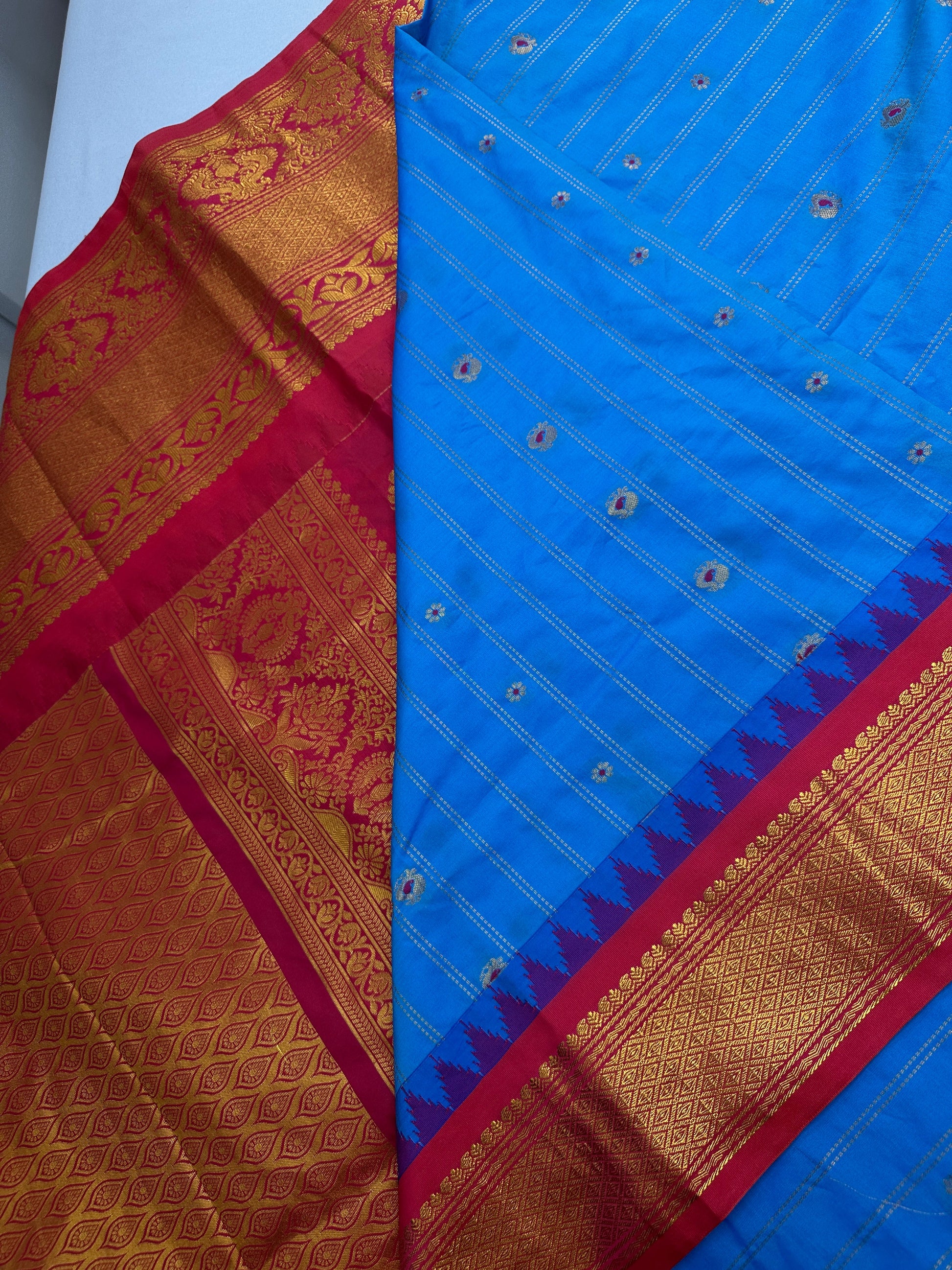 Gadwal Pattu Blue Pink Soft Silk Saree
