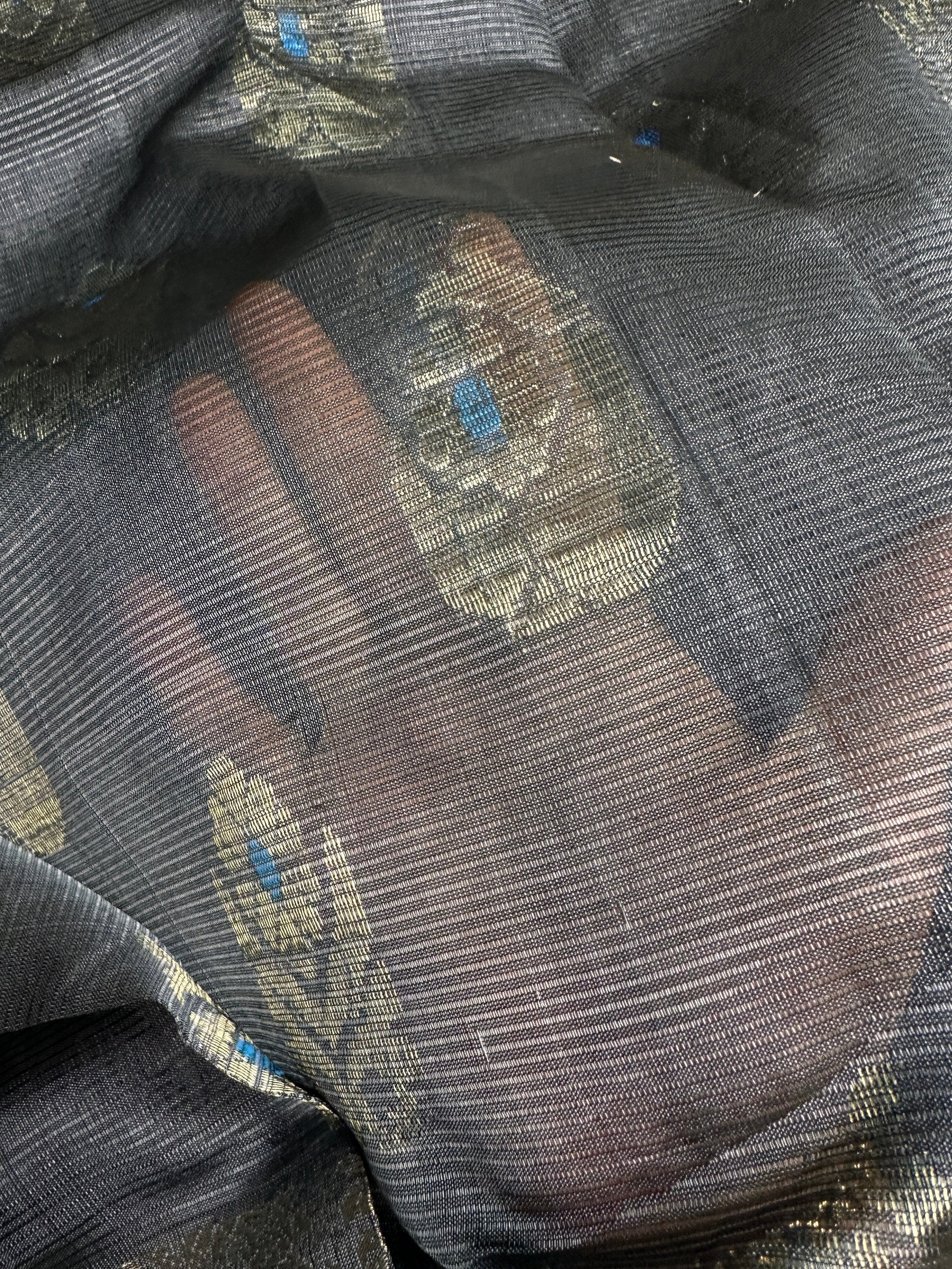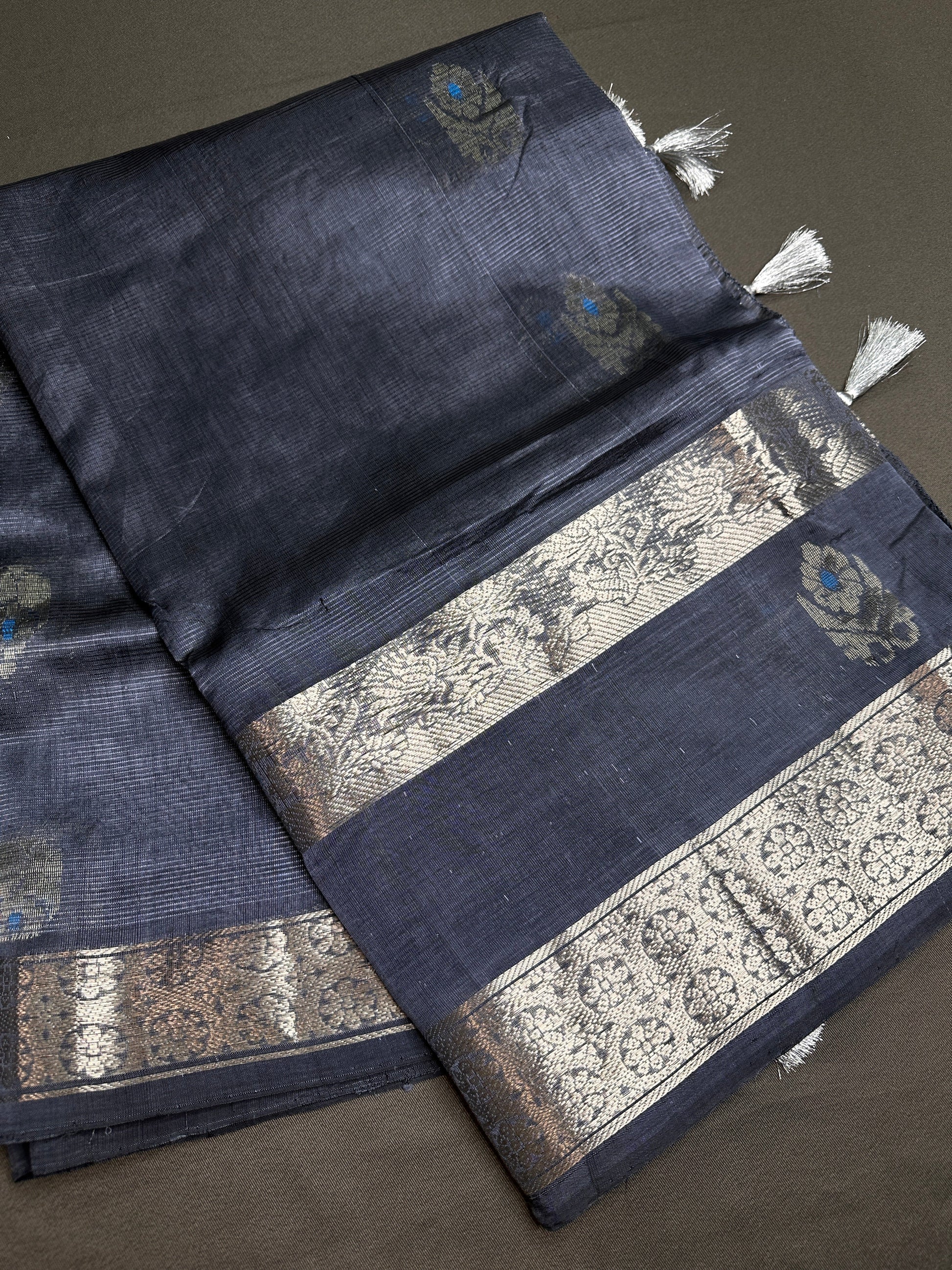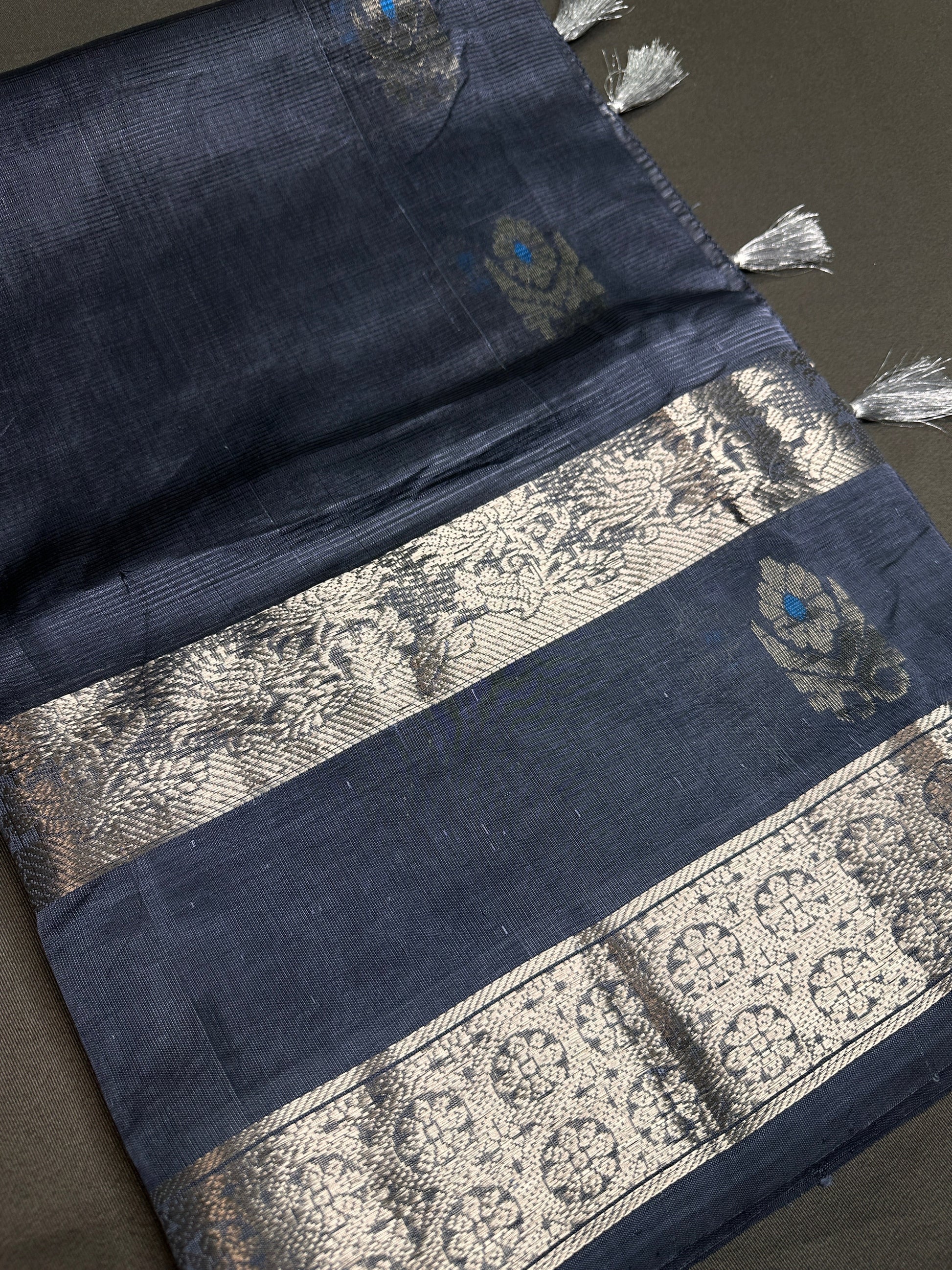 Gray Mangalgiri Pure Silk Handloom Saree Saree Details : Gray Color Saree with Gap Border Fall and Pico done Blouse Details : Gray Blouse Size 38 and has margin to go up to Size 44; Sleeves Length : 7 Inches: Blouse Length : 15 Inches; Front Neck : 7.5Inches; Back Neck : 10 Inches