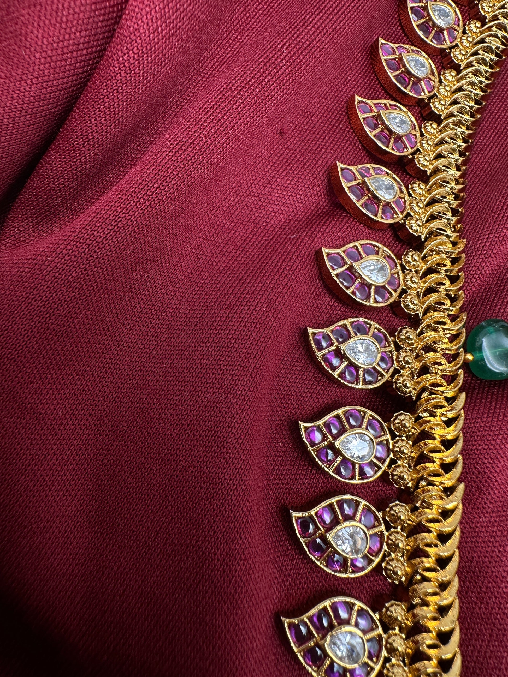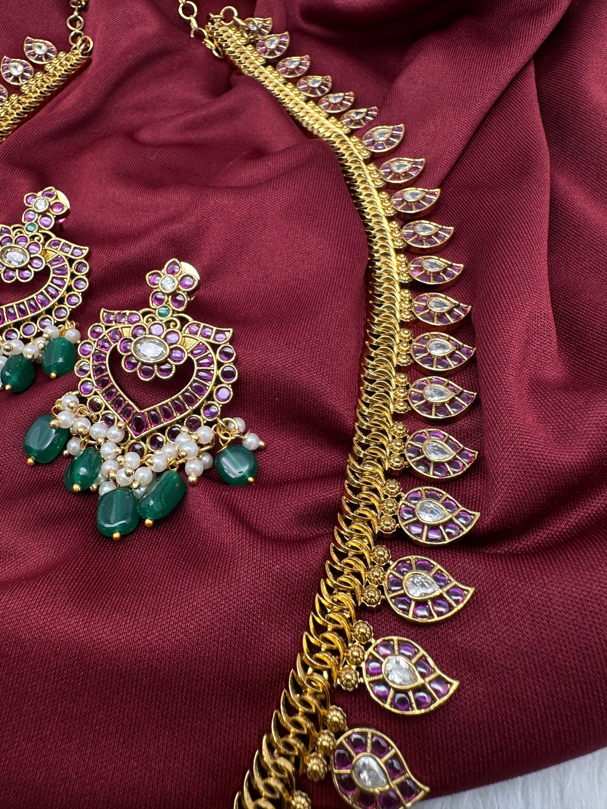 Kempu Mango CZ Long Matte Antique Necklace with matching earrings