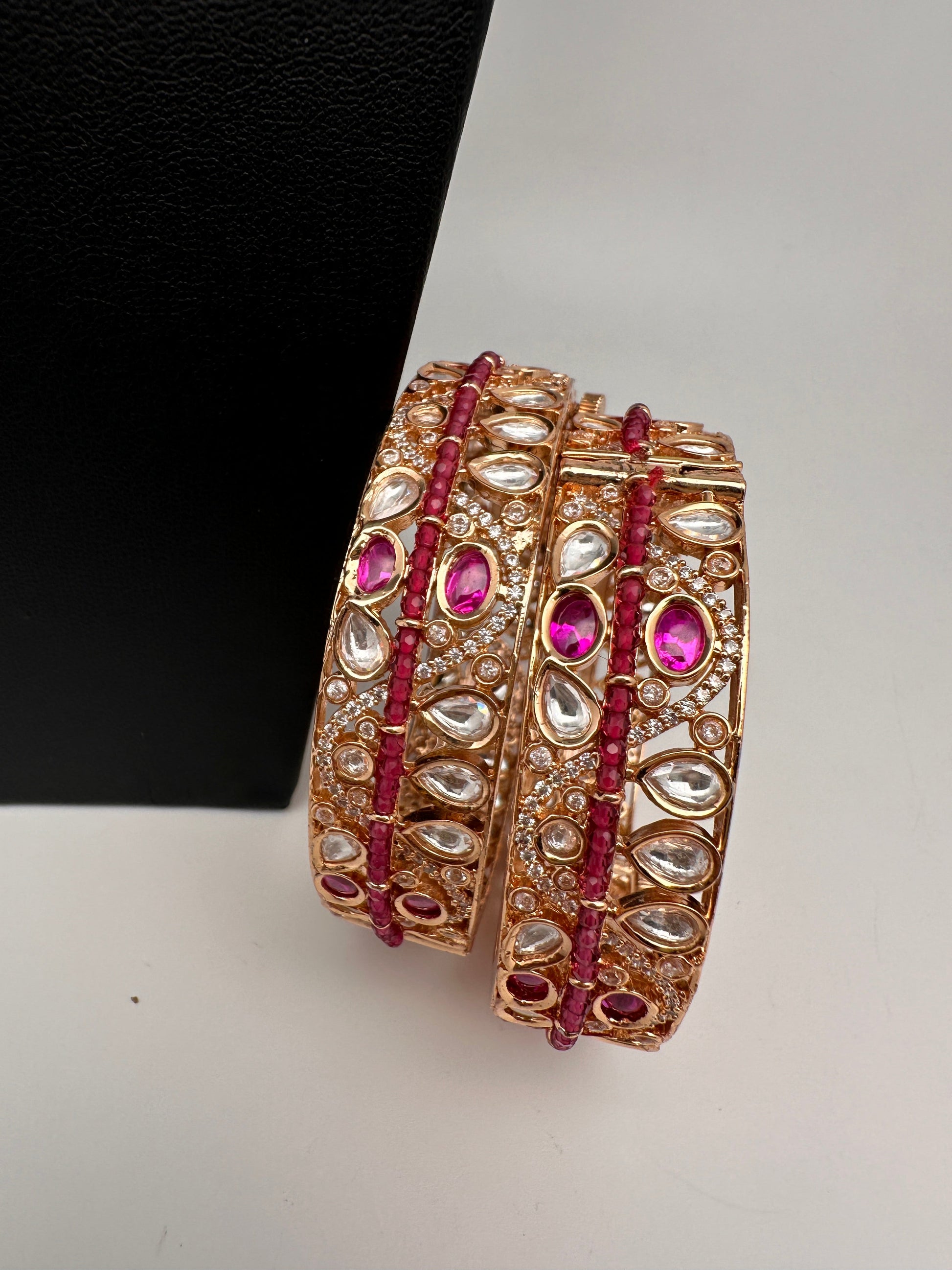 Traditional Bangles comes as a PairColor : goldSize : Size : 2.4Stones : Kundan Red Pink Beads
