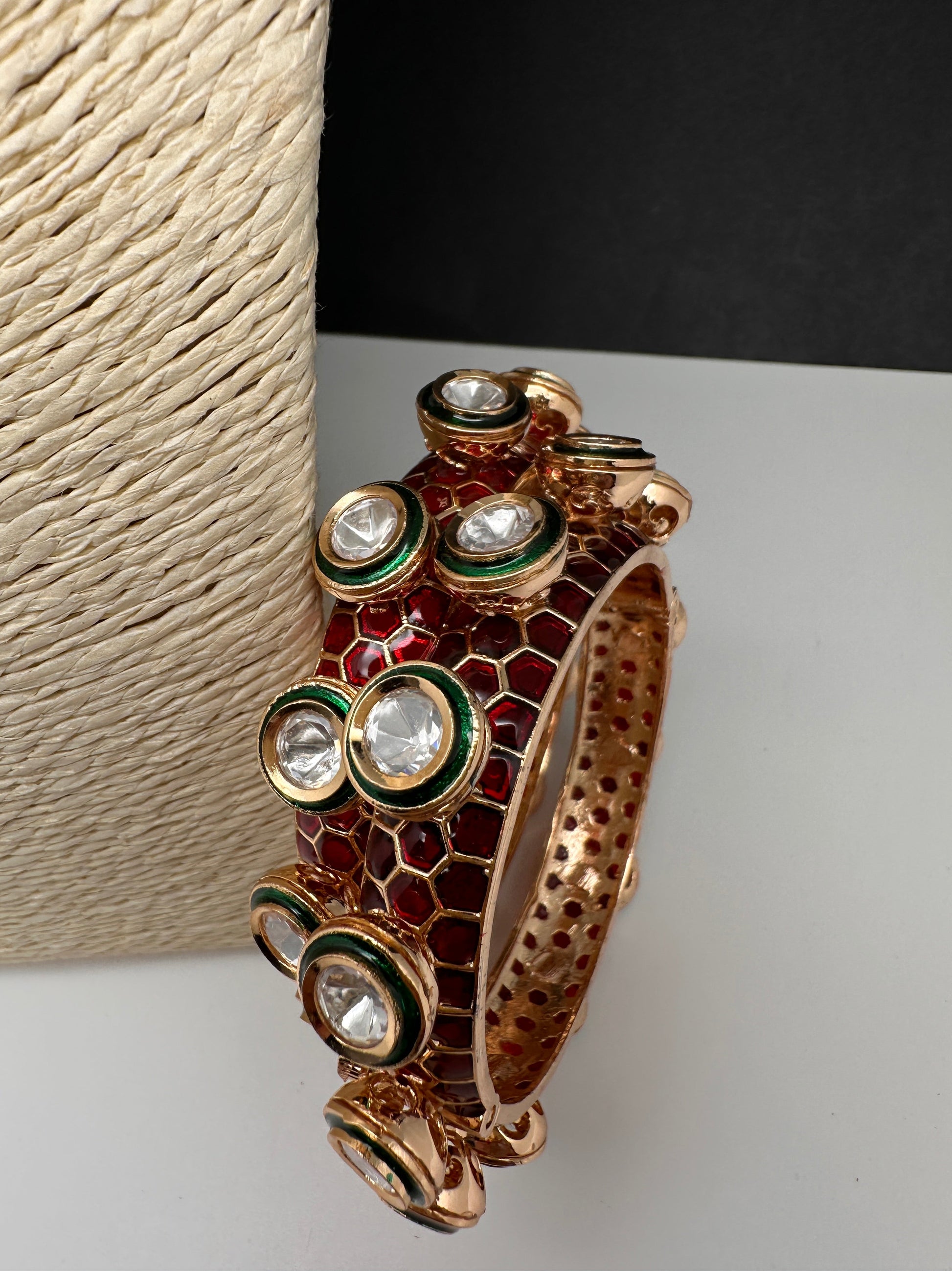Traditional Bangles comes as a PairColor : goldSize : Size : 2.4Stones : Kundan Red
