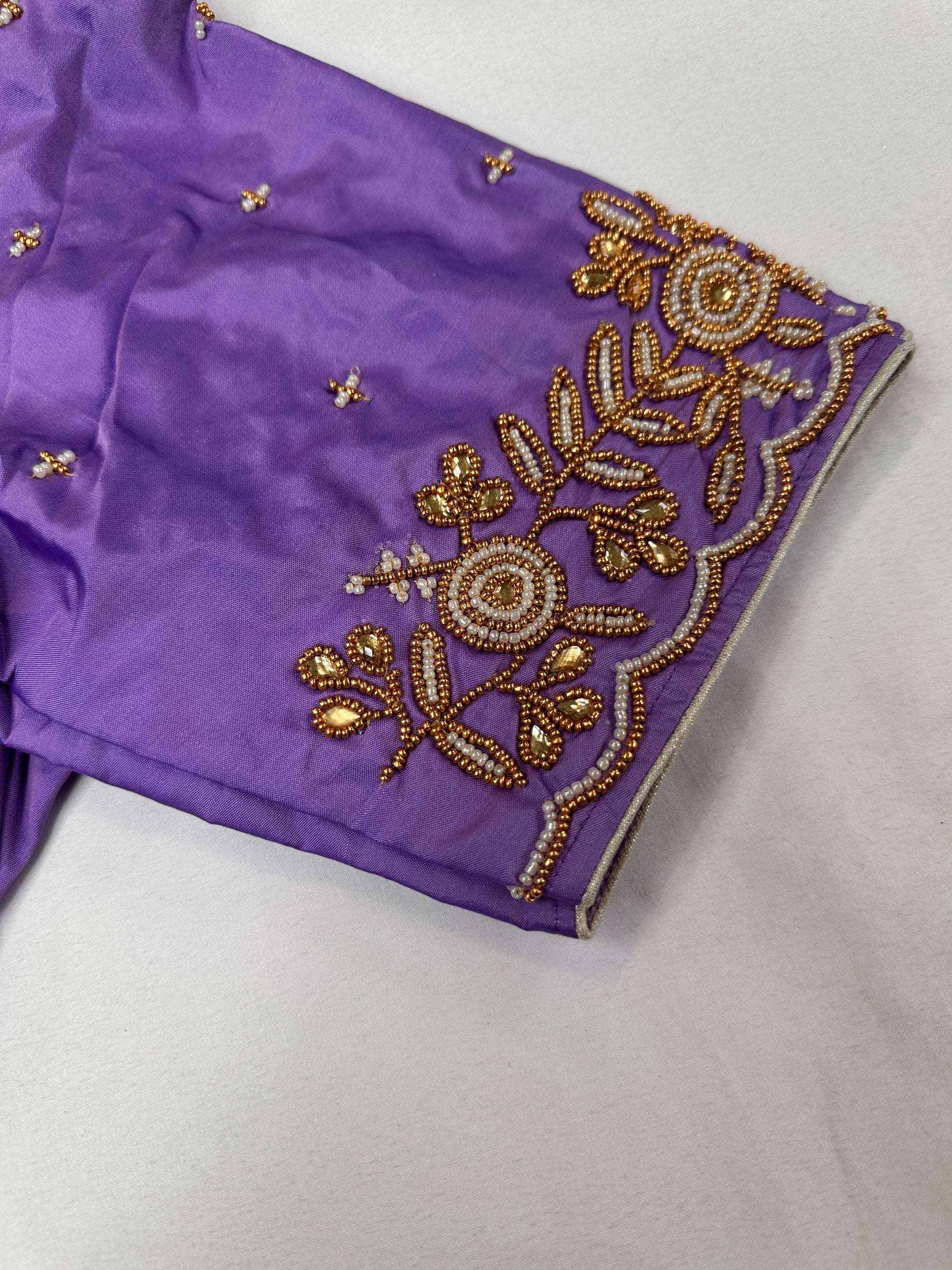Lavender Purple Pearl Maggam Aari Work Blouse