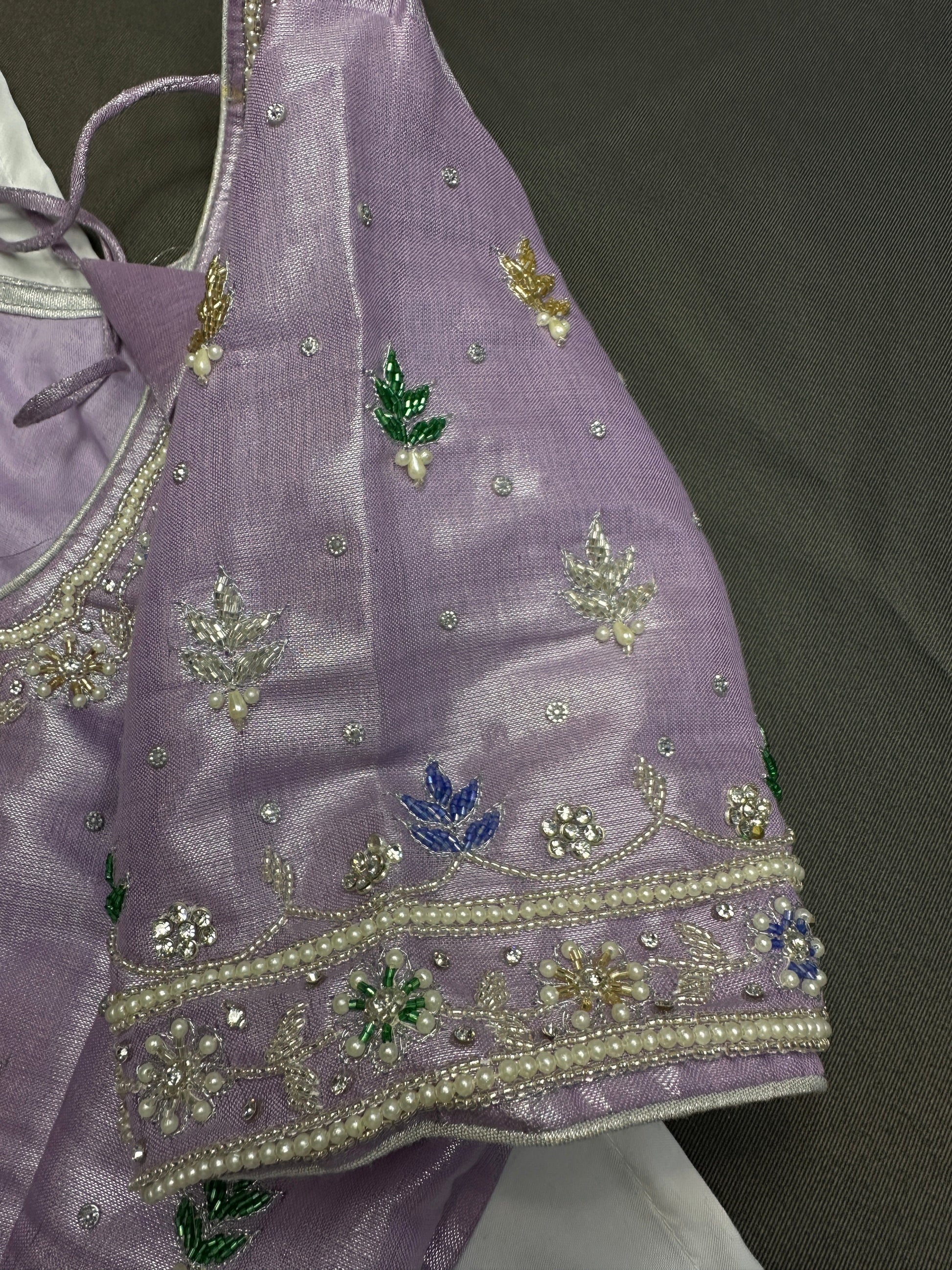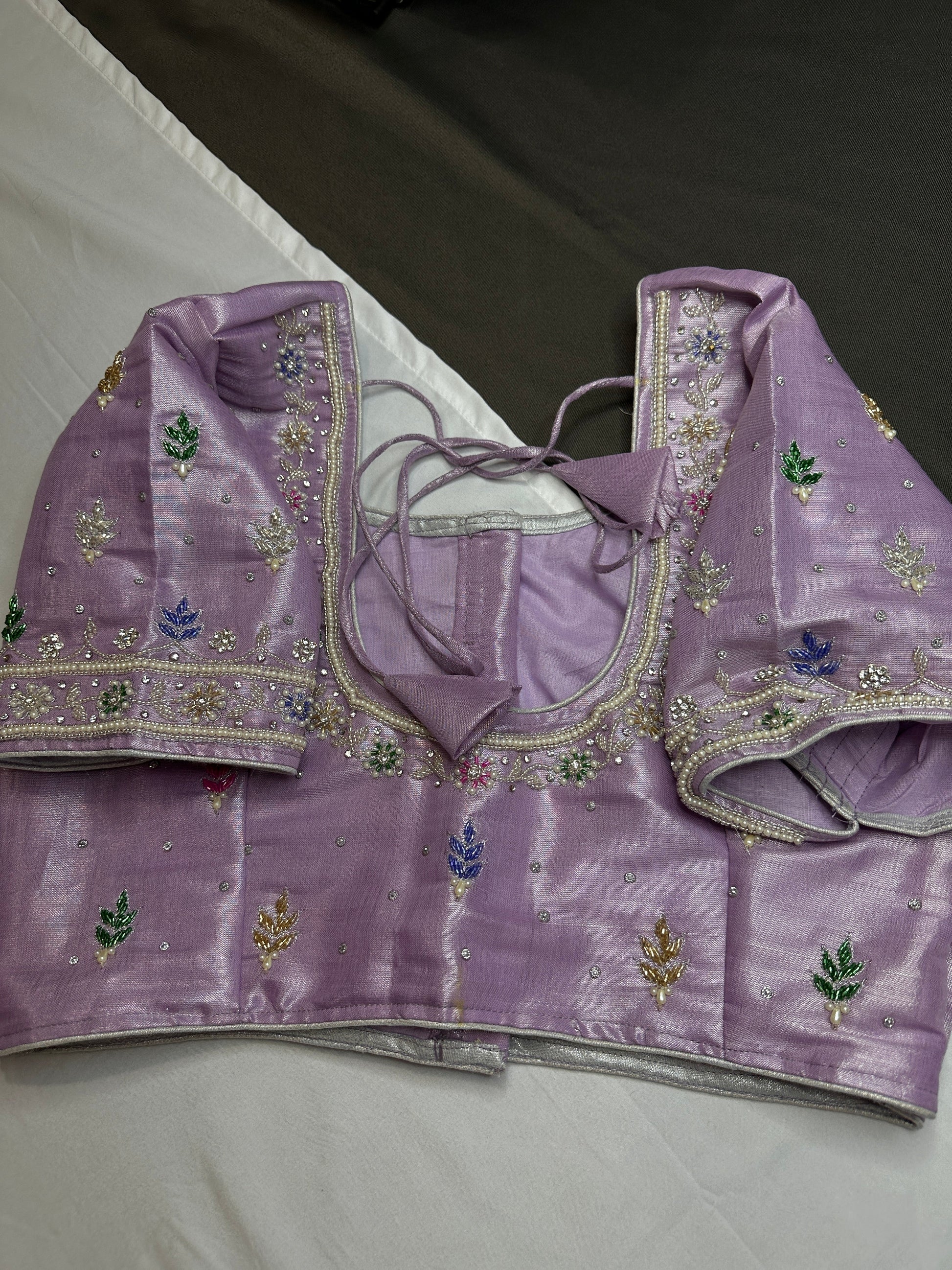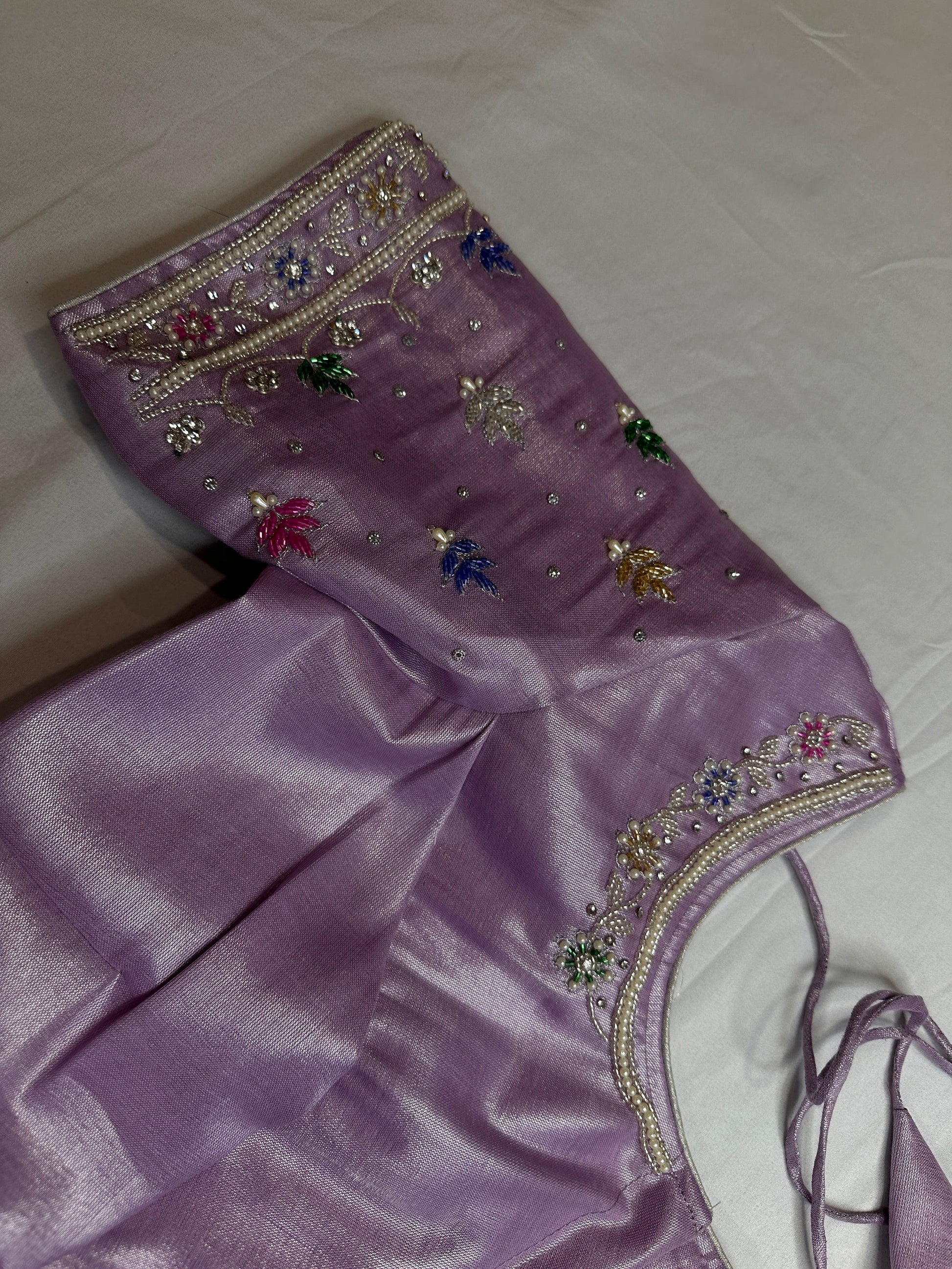 Lavender Purple Tissue Multi Color Maggam Blouse