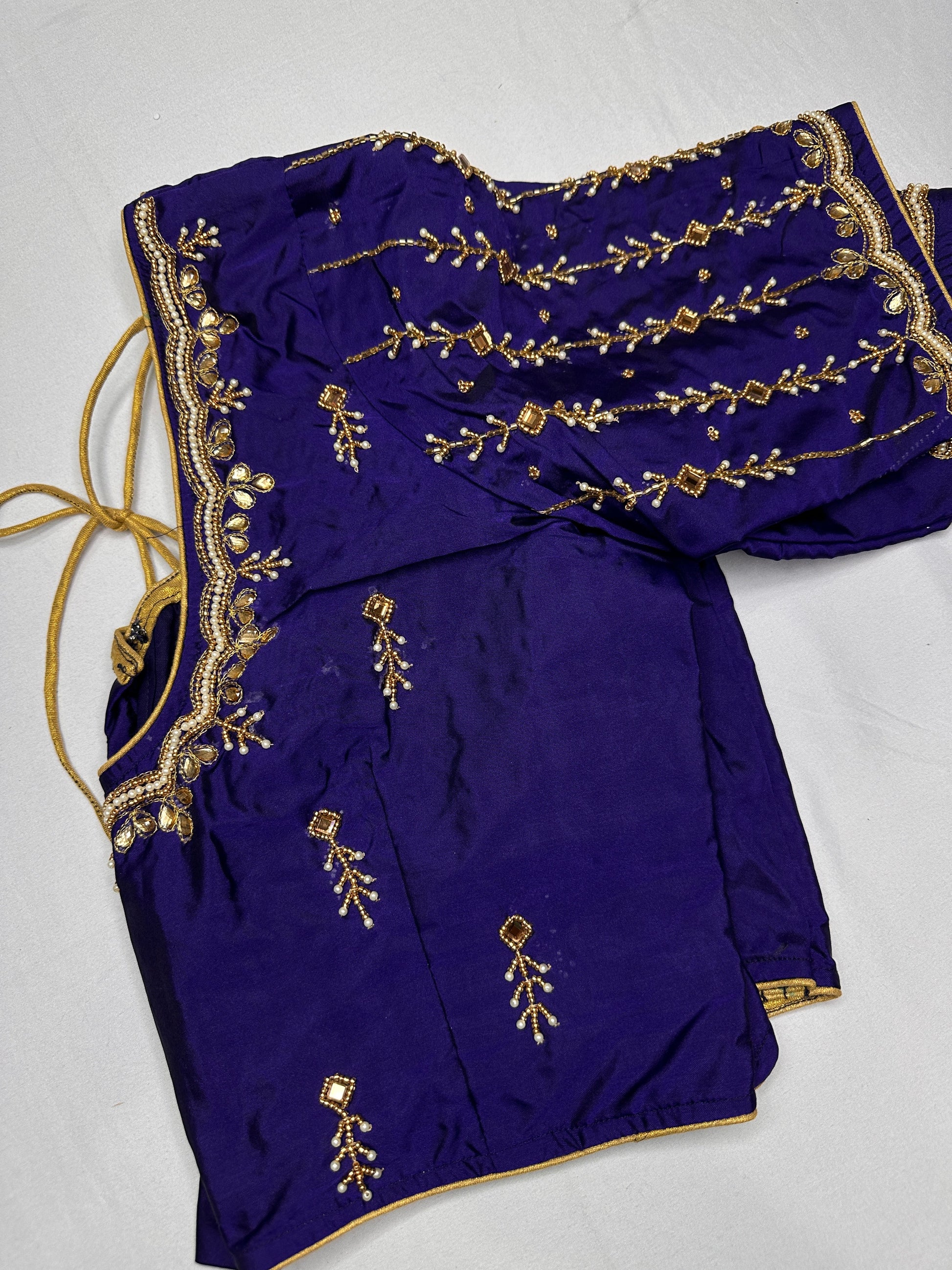 Maggam Net BlouseBlouse Details : Blouse Color : Black; Blouse stitched Size 40 and can be altered from 36 to 44, Sleeves Length : 10 Inches, blouse Length 15 Inches, FrontNeck : 6.5 Inches and Back Neck : 8 Inches;