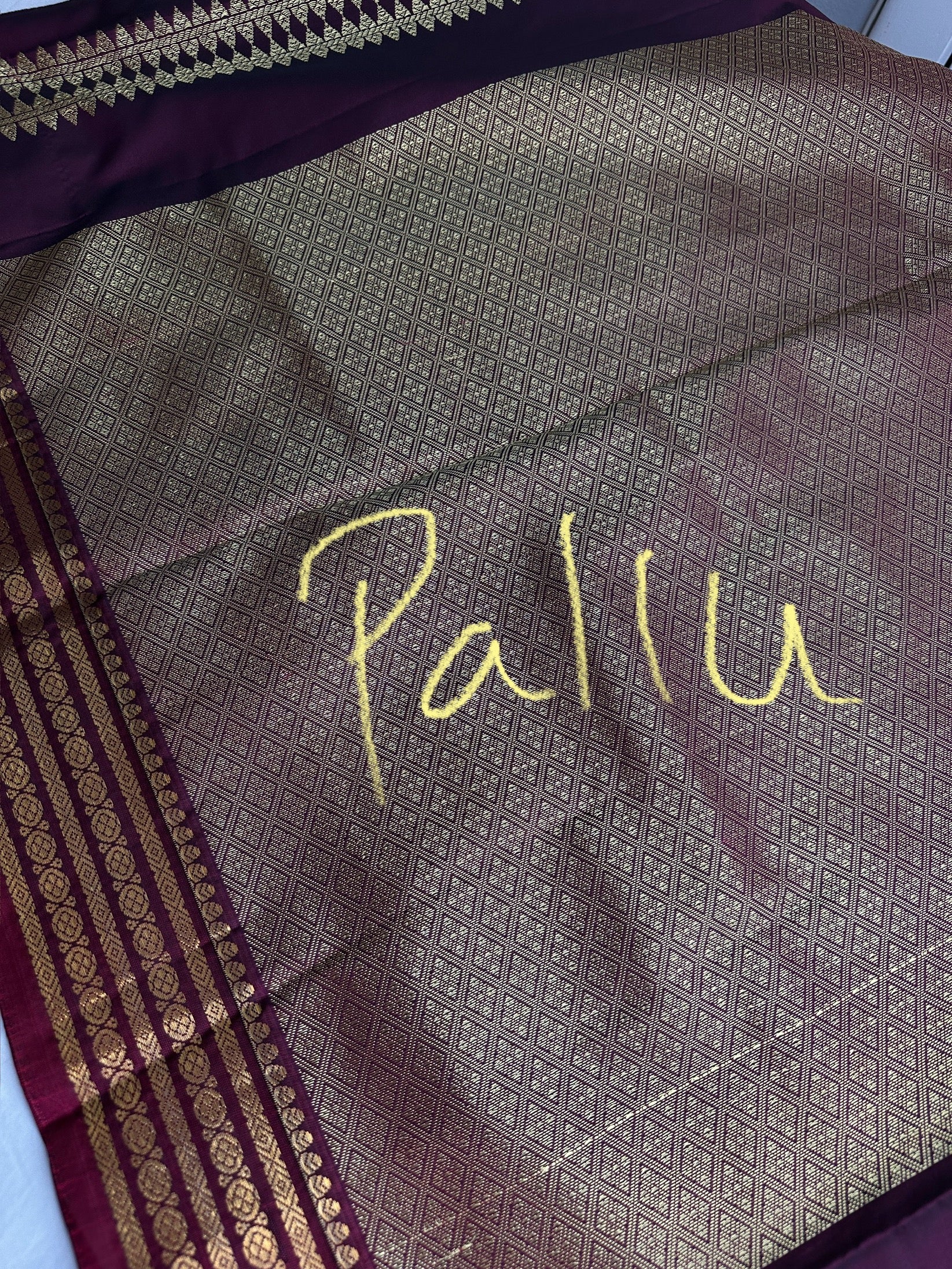 Mangalgiri Pattu Brown Maroon Soft Silk Saree