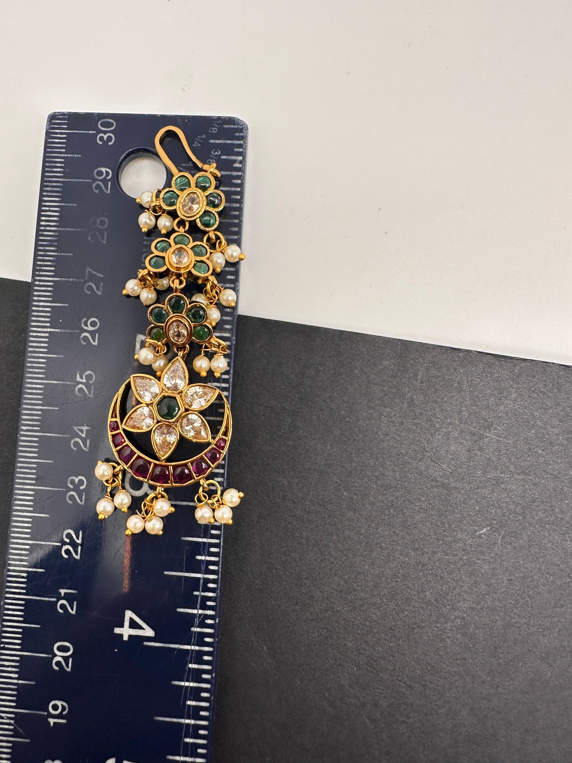 Matte Kempu Mang TikaColor : MatteSize : Length : Approx 3 inchesStones : Red Green Stone CZ Pearls