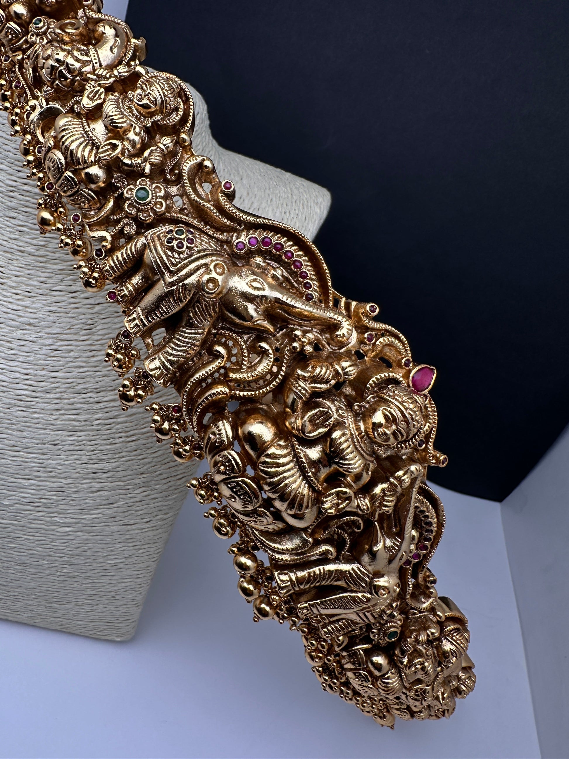 Matte Nakshi Goddess Lakshmi Elephant Hip Saree Belt long around waist adjustable waist belt