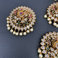 Matte Peacock Finish CZ Jada Billa Hair Pin Set Set of 9 Hair Pins 3 Small 3 Medium and 3 Large Classical Dance Jewelry accessories Color : Matte Size : Total Length : Approx 13 Inches for 9 Billa Pins, 1 big :2.25 Inches; 4 Medium : 2 Inches; 4 Small :1.75 Inches Stones : AD Red Green Stone Pearls