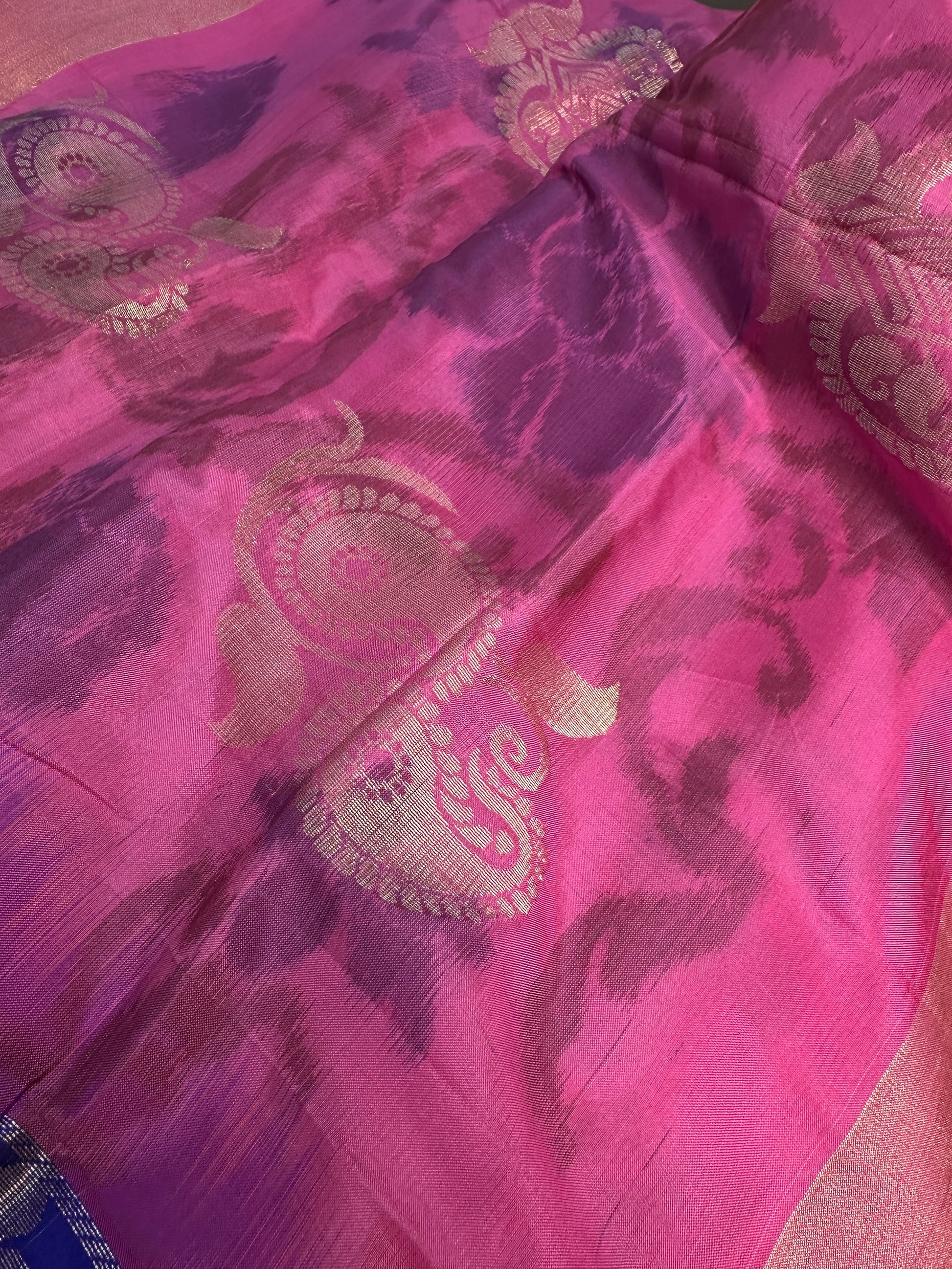 Pink Blue Semi Uppada Silk Butta Saree