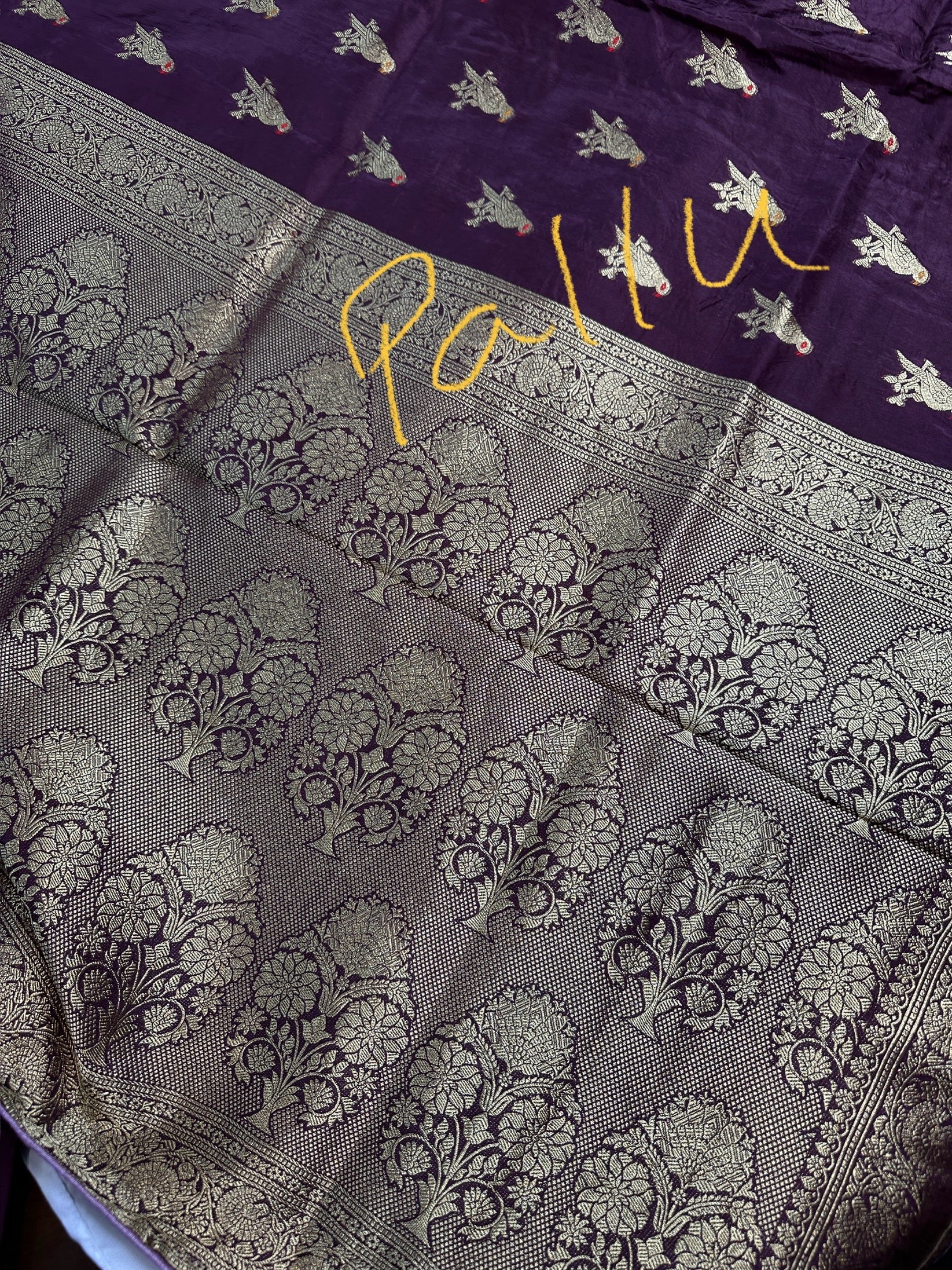 Saree Details : Purple Plum Color Saree Purple Color Pallu Fall and Pico done