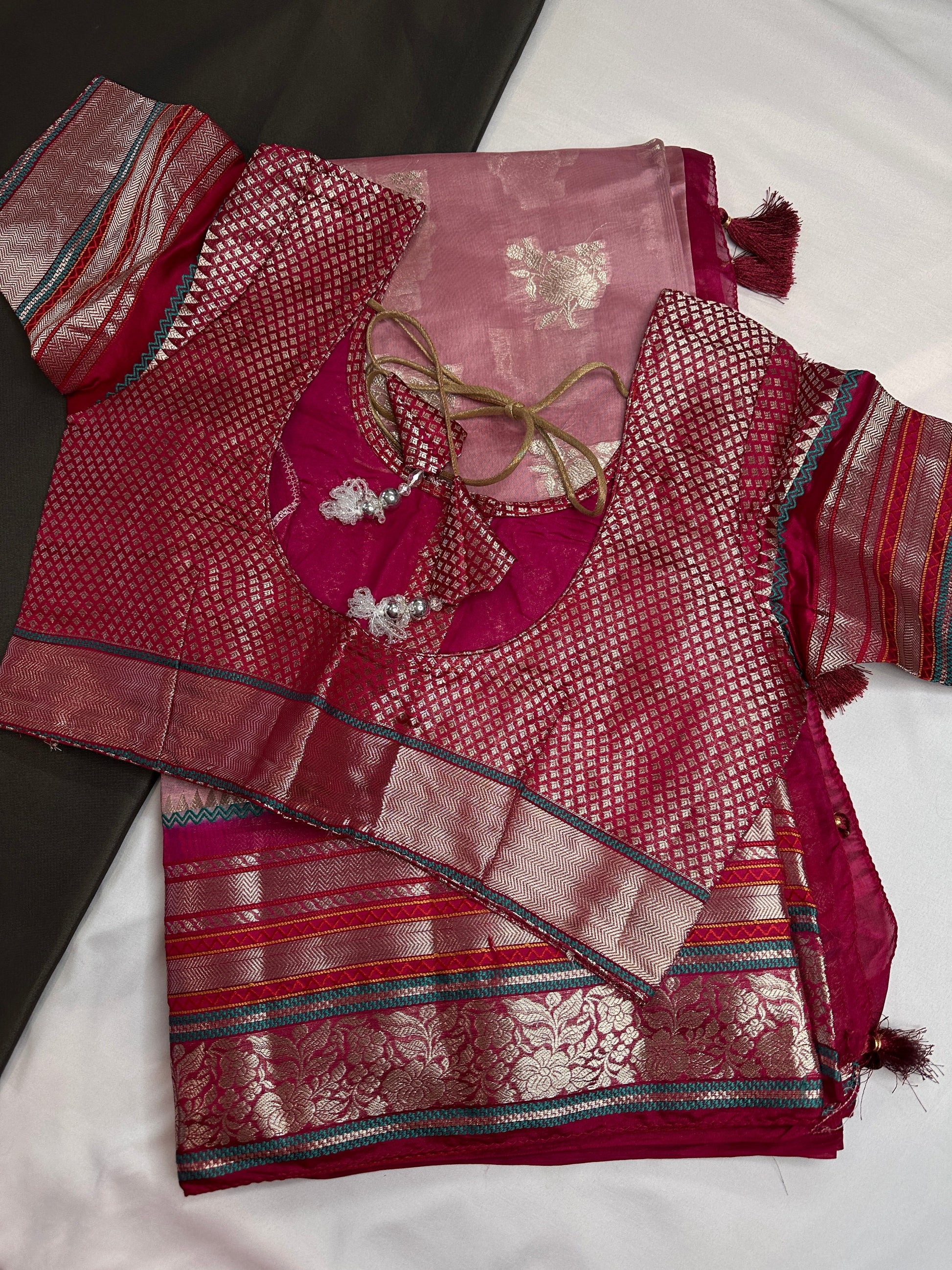 Saree Details : Light Pink Color Saree Dark Pink Color Pallu Fall and Pico done