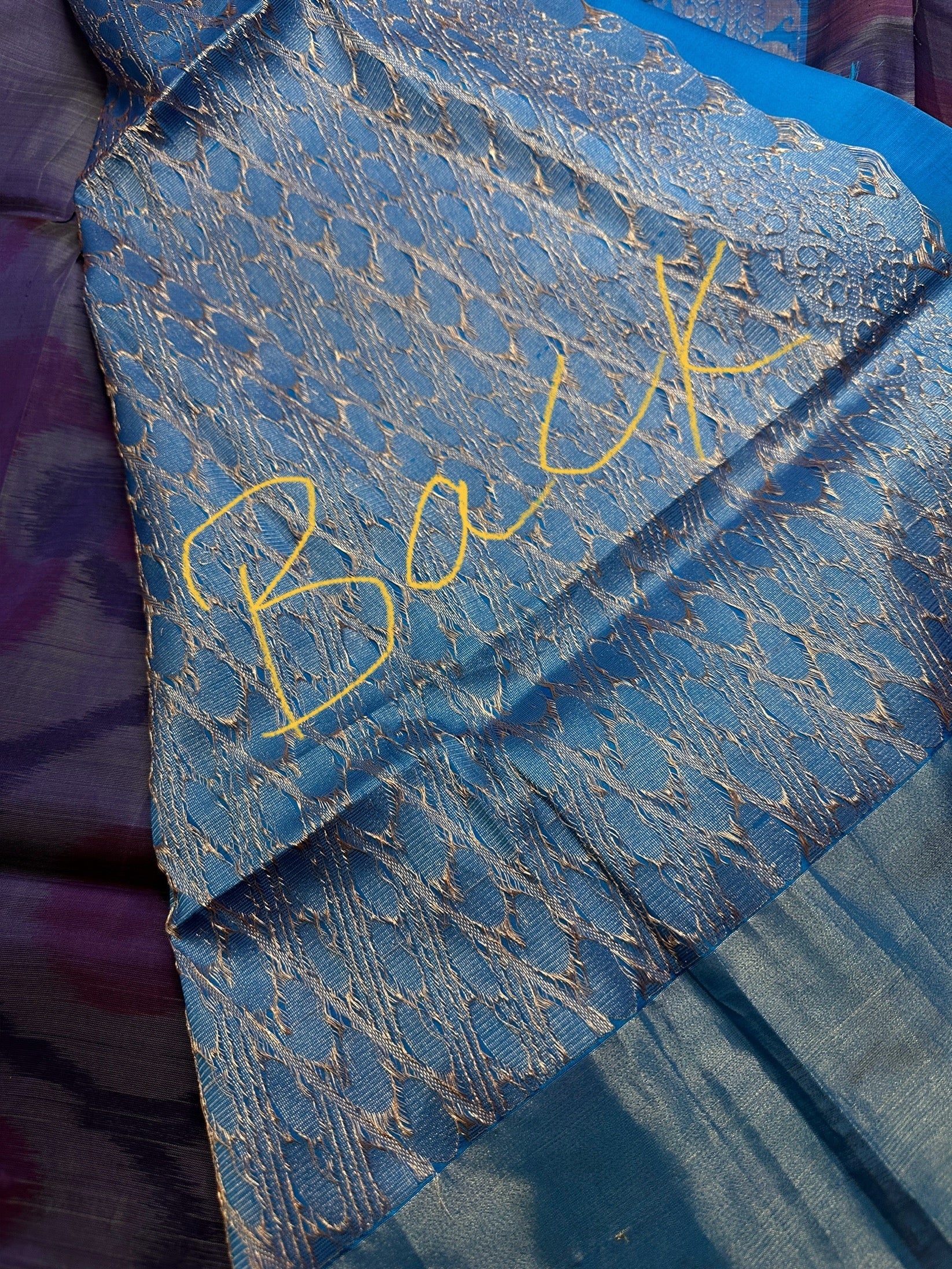 Saree Details : Purple Color Saree Blue Color Pallu Fall and Pico done