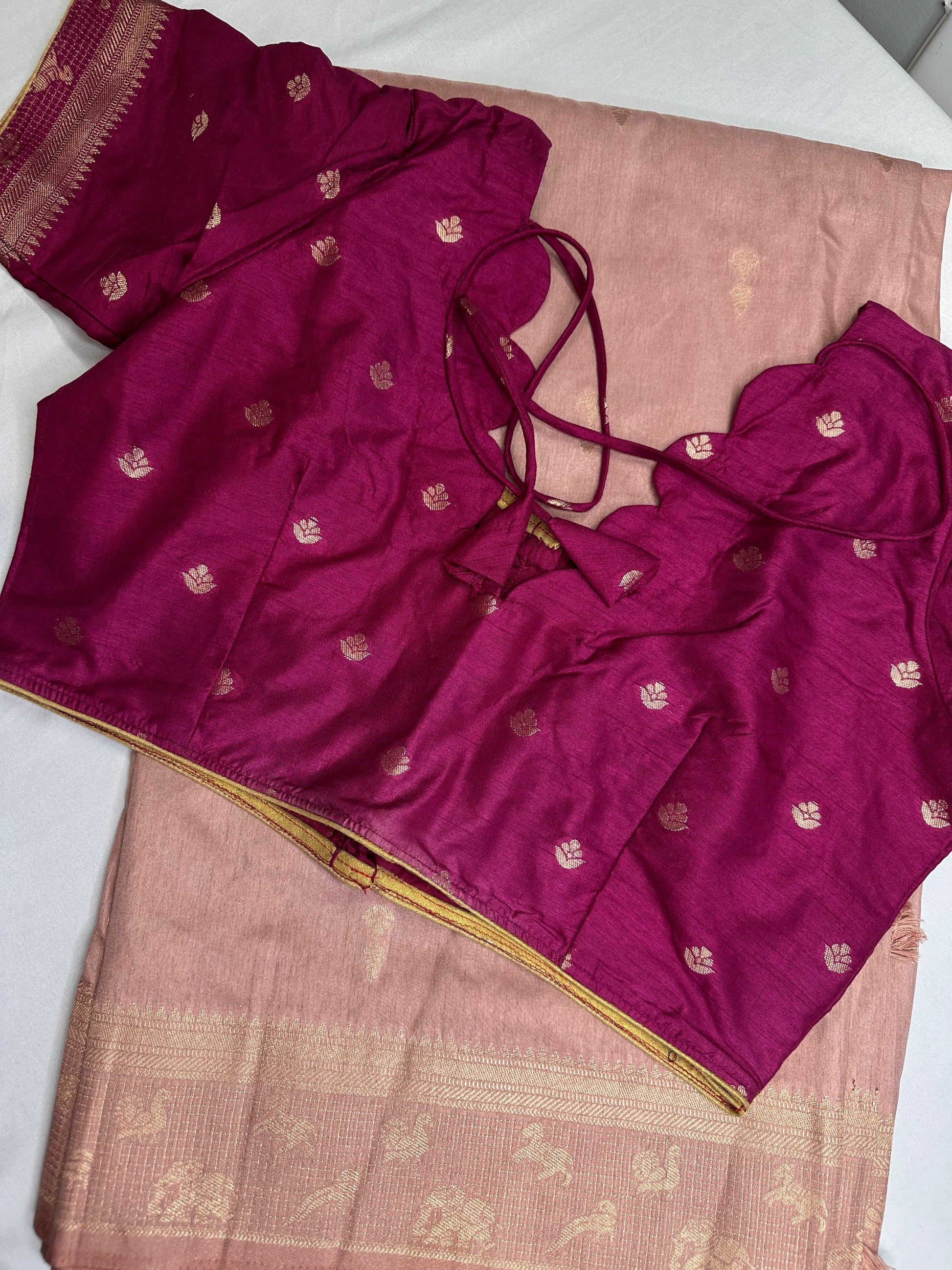 Saree Details : Dusty Pink Color Saree Magenta Pink Pallu Fall and Pico done