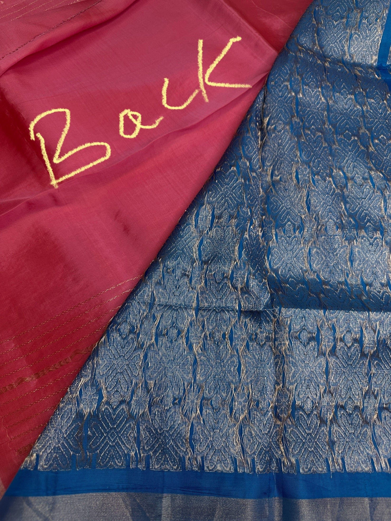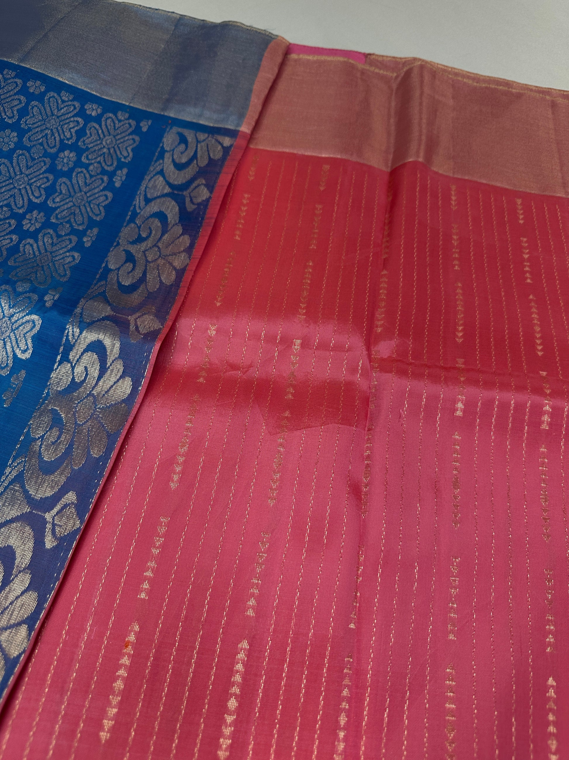Saree Details : Pink Color Saree Blue Pallu Fall and Pico done