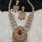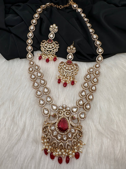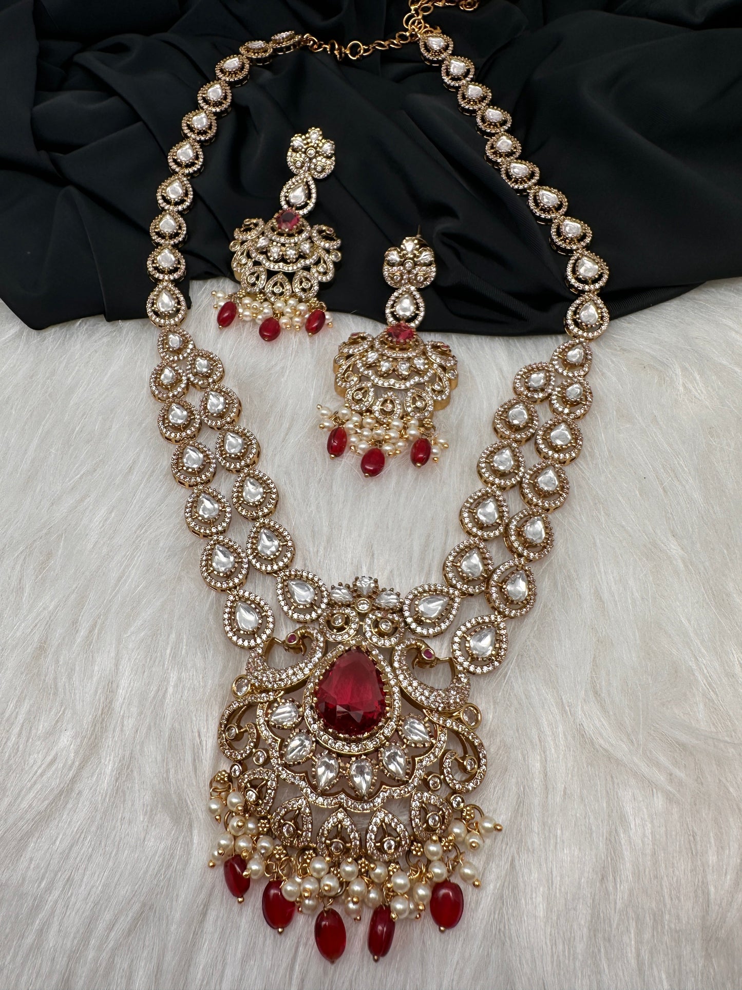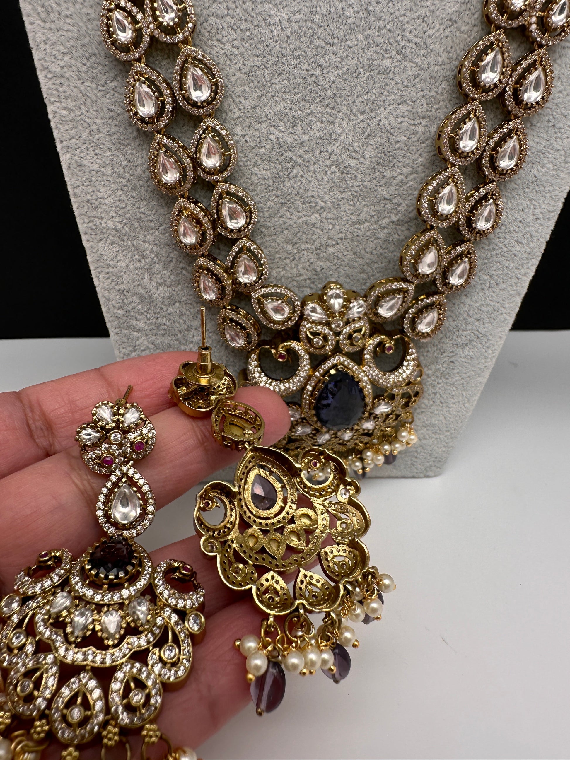 Victorian CZ Double Layer Color Stone Long Necklace with Matching Earrings